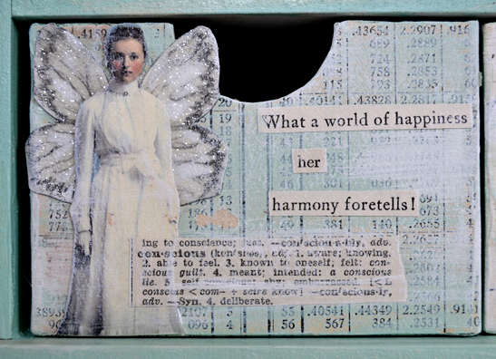 You did such a lovely job decorating this-it is so beautiful! I just love the aqua color and the ethereal collages on the drawers-A feast for the eyes!