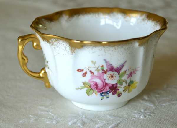 I will be so happy to have a cup of tea with you, sipping from that lovely cup,with its beautiful flowers and all the gold. Thankyou I would prefer a cup of Earl Grey,while admirering your very lovely old cup.